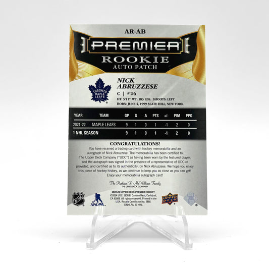 2022-23 - UD PREMIER - ROOKIE AUTO PATCH - NICK ABRUZZESE 65/65